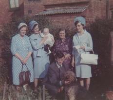 above L-R - (1) Steve Lovesey aged about 14, (2) Private S L Lovesey of the Royal Signals in Cyprus c.1958, (3) 9th June 1963 at the rear of no.44, the family - Auntie Kate (Catherine Hickey), Nan Rose (Lovesey nee Hickey), me, Granny Hickey (Sophia Turland), Mom (Eileen Hymas) and Dad in the foreground with Mackey the Airedale celebrating my Christening